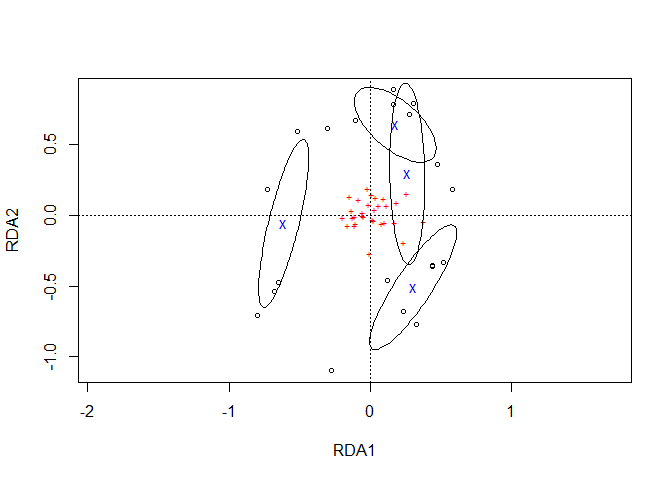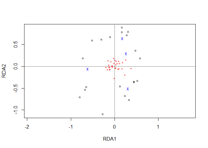 For the examples, we use the constrained ordination method of redundancy analysis.