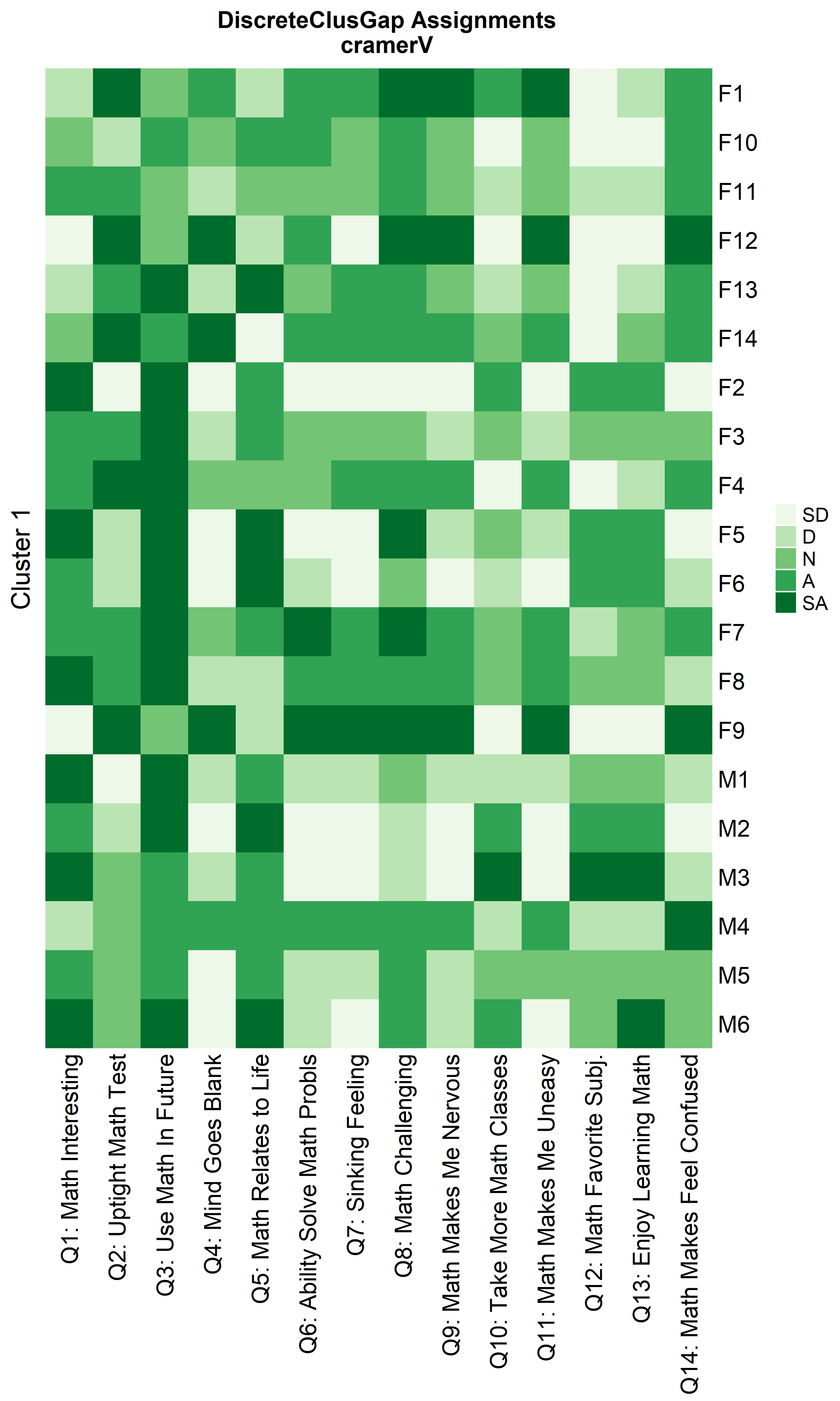 main = "Cramer's V Distance\nMath Anxiety Data",