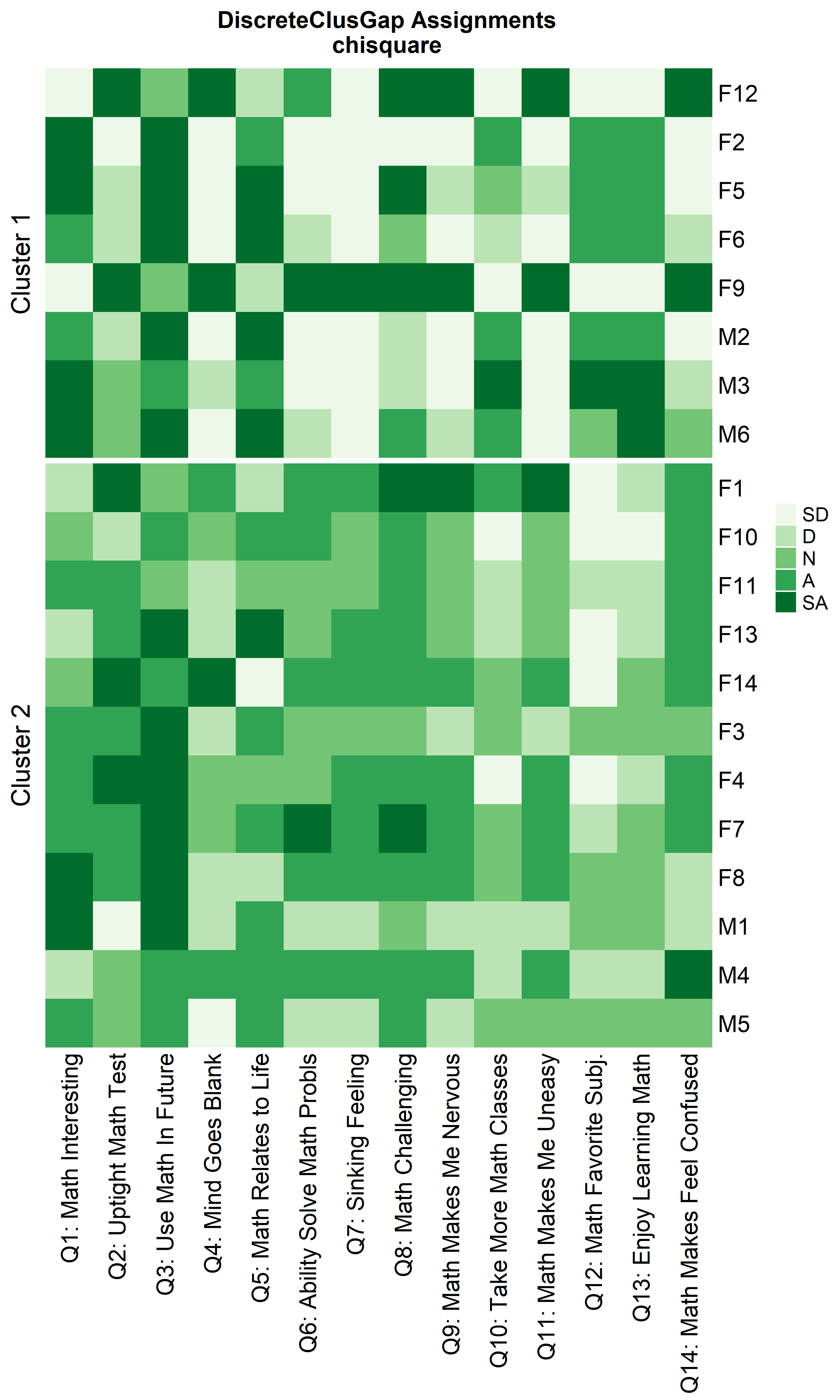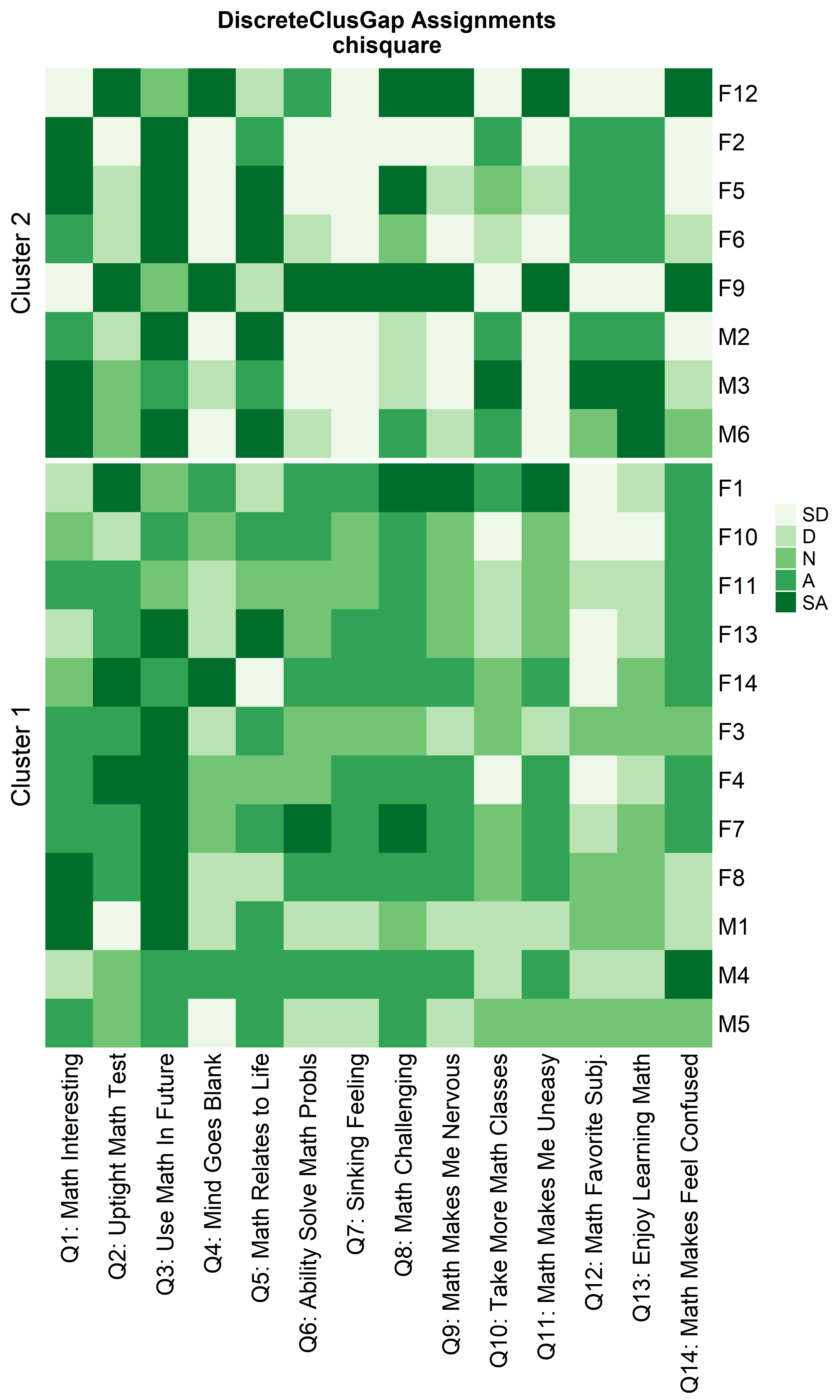 main = "Discrete Gap statistic: chi-square Distance\nMath Anxiety Data",