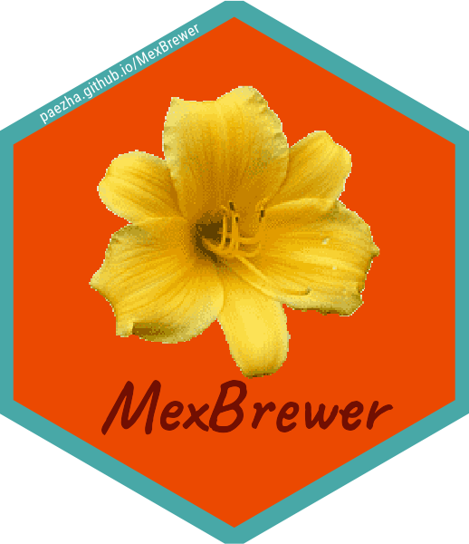 MexBrewer is a package with color palettes inspired by the works of Mexican painters and muralists. This package was motivated and draws heavily from the code of Blake R. Mills’s {MetBrewer}, the package with color palettes form the Metropolitan Museum of Art of New York. The structure of the package and coding, like {MetBrewer}, are based on {PNWColors} and {wesanderson}.