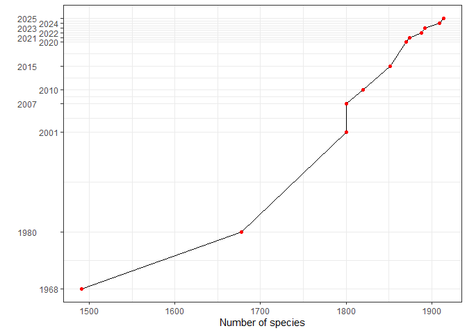 #> [05/04/2025] List of the birds of Peru / Lista de las aves del Perú.