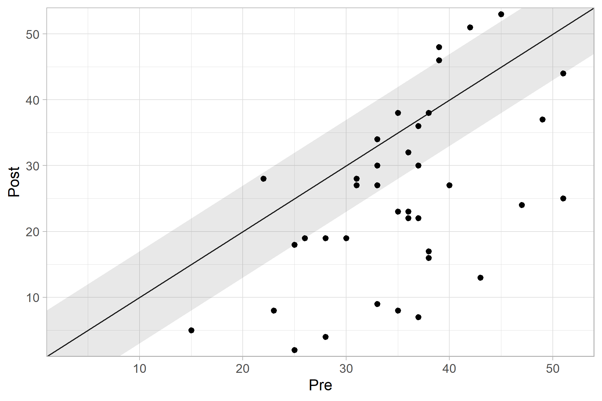 #> Individual anchor-based analysis of clinical significance with a 7 point