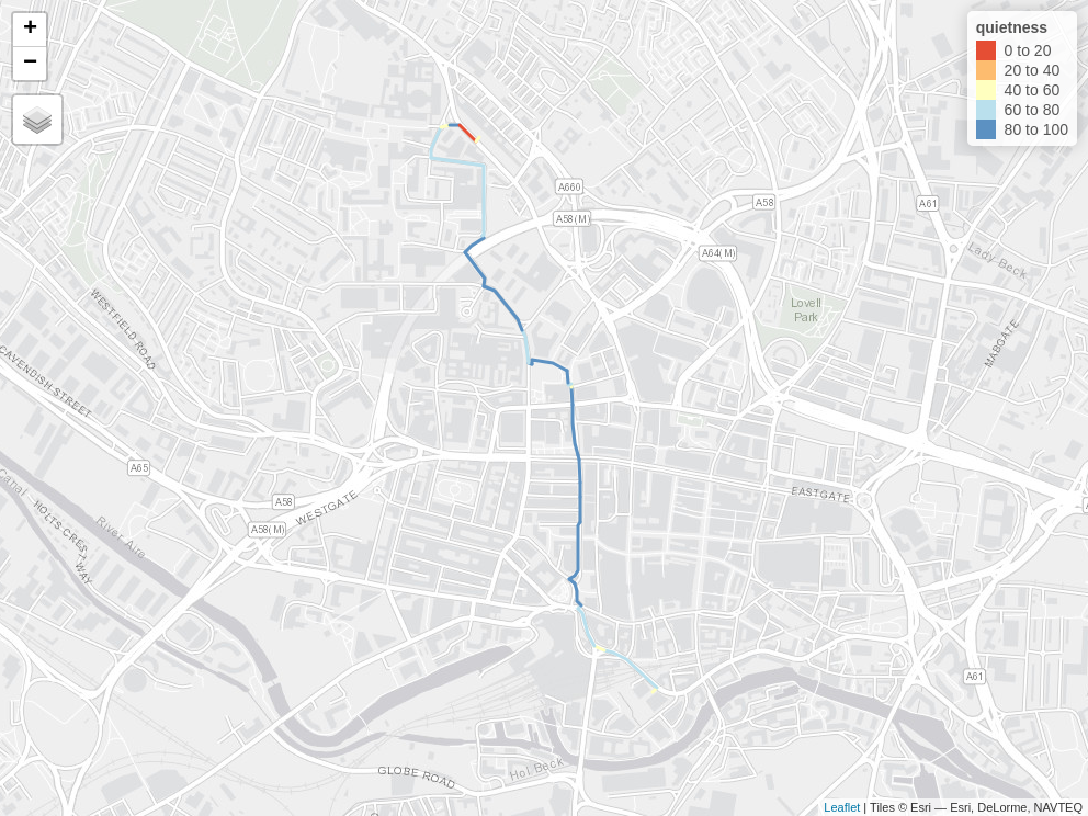 addPolylines(color = ~p(quietness), weight = 20, opacity = 0.9) %>%