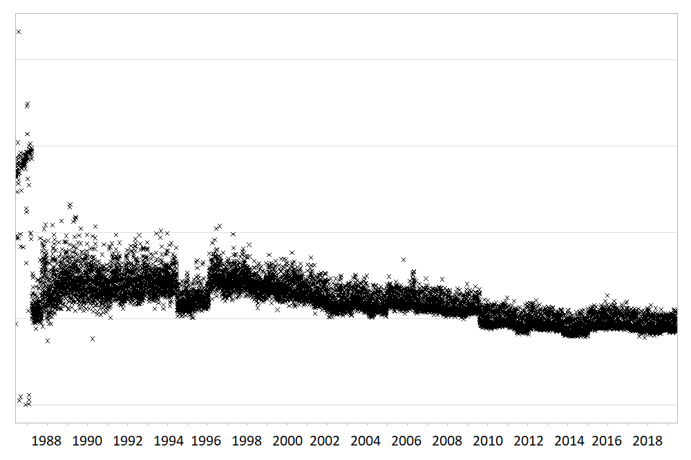 Large routinely-collected datasets are increasingly being used in research. However, given their data are collected for operational rather than research purposes, there is a greater-than-usual need for them to be checked for data quality issues before any analyses are conducted. Events occurring at the institutional level such as software updates, new machinery or processes can cause temporal artefacts that, if not identified and taken into account, can lead to biased results and incorrect conclusions. For example, the figures below show real data from a large hospital in the UK, and how it has changed over time.