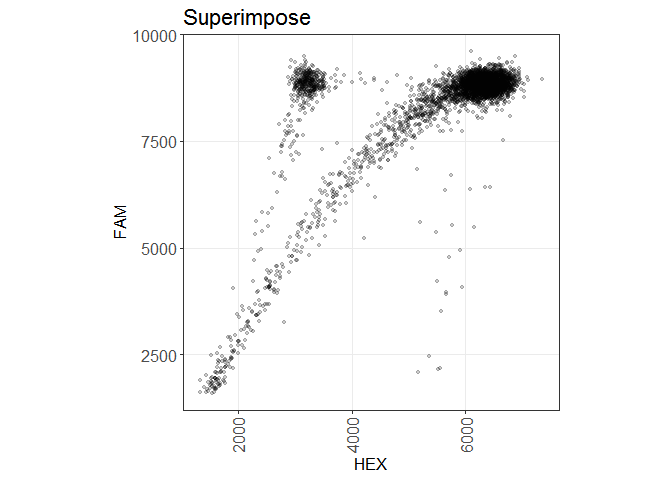 Note: throughout this document, FAM will be synonymous to Y axis and HEX will be synonymous to X axis, as a reflection of the fact that conventionally when visualizing the data the FAM intensity is plotted on the Y axis and the HEX intensity is on the X axis.
