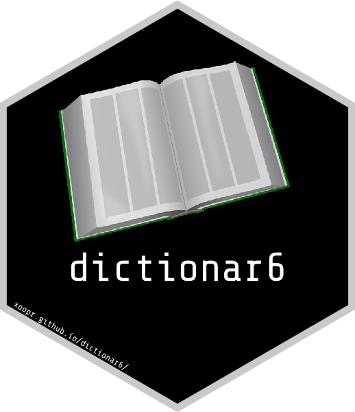 dictionar6 is an R6 dictionary interface that makes use of symbolic representation to efficiently store R6 and non-R6 objects as symbols to prevent issues with cloning, large object sizes, or construction bottlenecks. The dictionary contains all ‘usual’ methods for getting and setting elements.