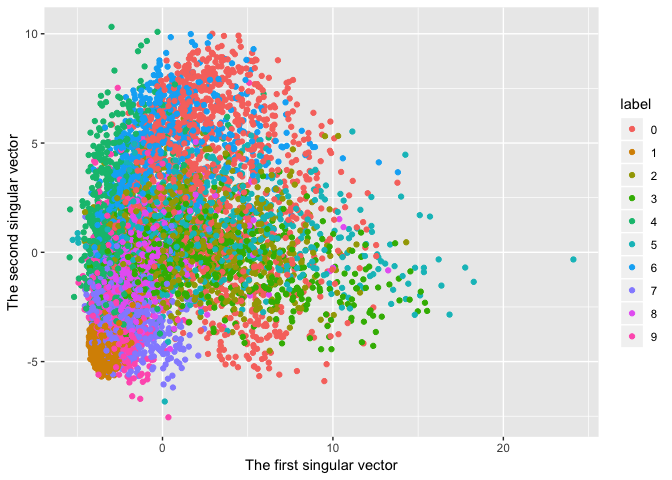 Plot the original data on the first and second singular vector plane.