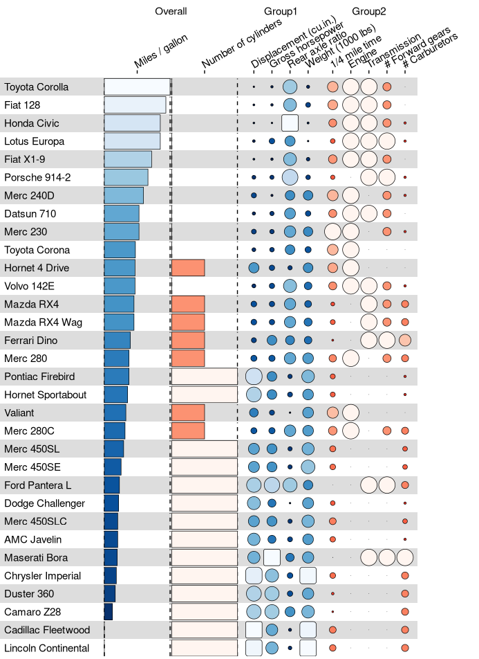 "mpg", "overall", "Miles / gallon", "bar", "palette1", list(width = 4, legend = FALSE),