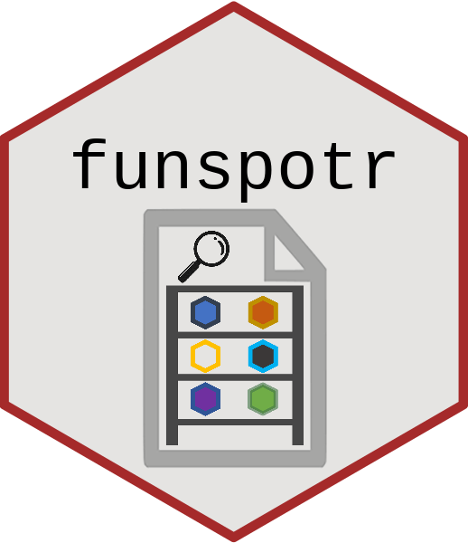 worksThe goal of funspotr (R function spotter) is to make it easy to identify which R functions and packages are used in files and projects. It was initially written to create reference tables of the functions and packages used in a few popular github repositories1.
