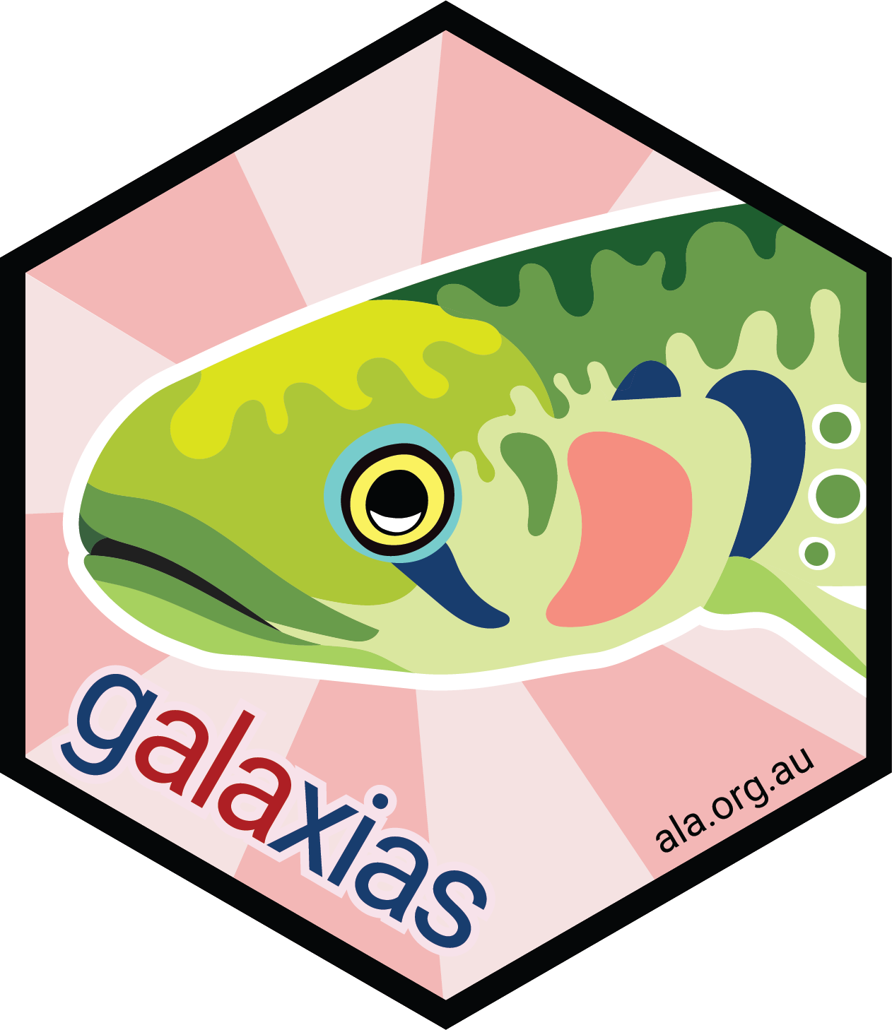 galaxias is an R package that helps users describe, bundle, and share biodiversity information using the ‘Darwin Core’ data standard. galaxias provides tools in R to build a Darwin Core Archive, a zip file containing standardised data and metadata accepted by global data infrastructures. The package mirrors functionality in devtools, usethis, and dplyr to manage data, files, and folders. galaxias was created by the Science & Decision Support Team at the Atlas of Living Australia (ALA).
