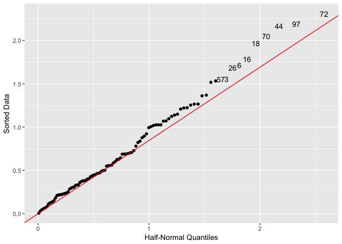 gghalfnorm(x = rnorm(100), nlab = 10)