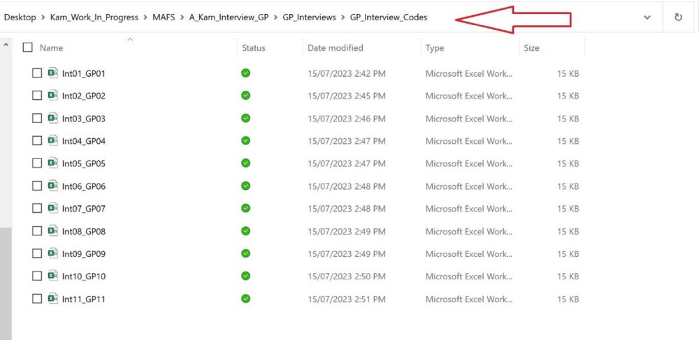 56.Imagine that you are interested in public perceptions of insects. You’ve done 15 one-on-one interviews, you’ve made a few refinements, and you want to see how things are going. You have exported coding matrices for the 15 interviews from NVivo and put them into C:/insect_study/matrices/. You also have a field notes spreadsheet, located at C:/insect_study/records/refinements.xlsx. So your file structure looks like this: