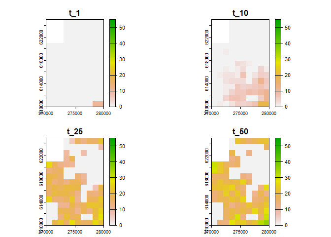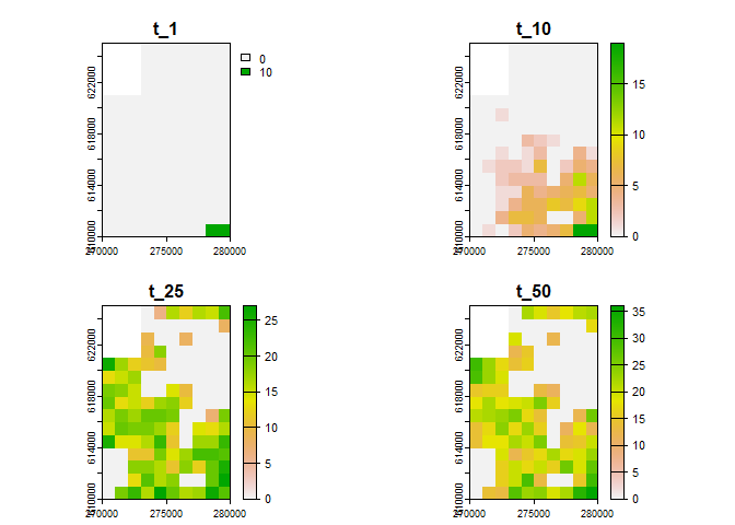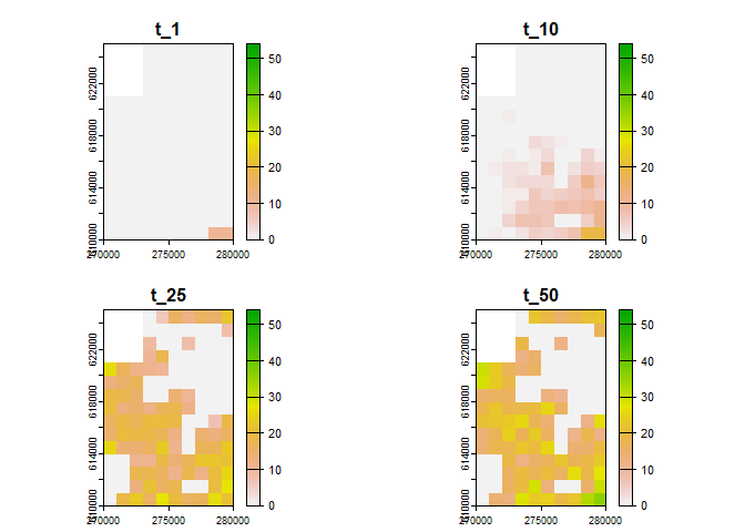 Note that this is a simple example and there are many more parameters that can be set for initialise() and sim(). See the documentation for the rangr package for more information.
