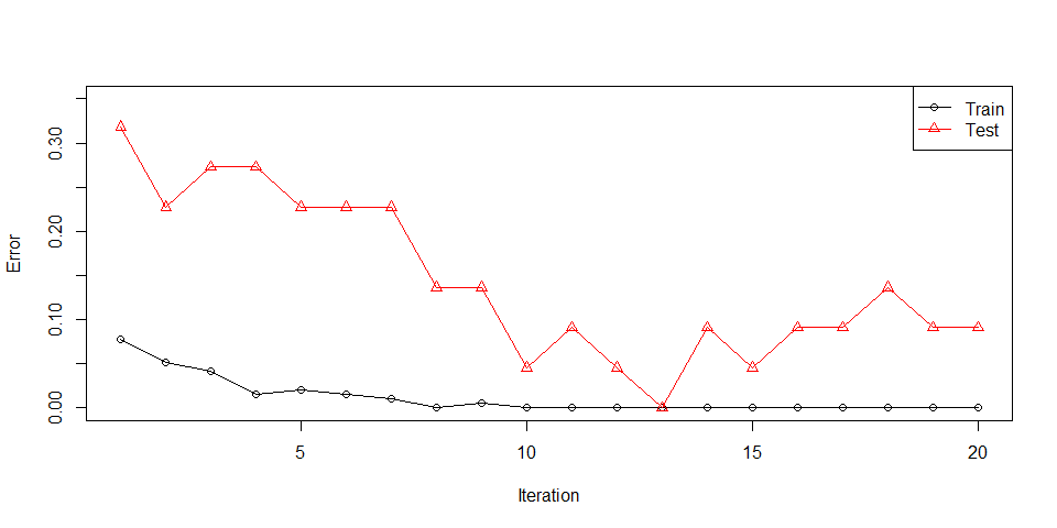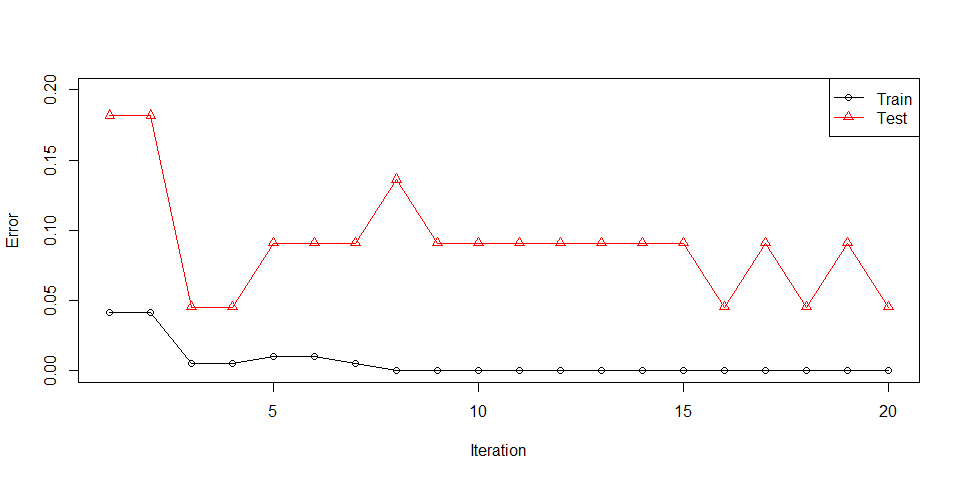 #> 18 Train err:0.00000, Test err:0.04545, Weighted err:0.14301