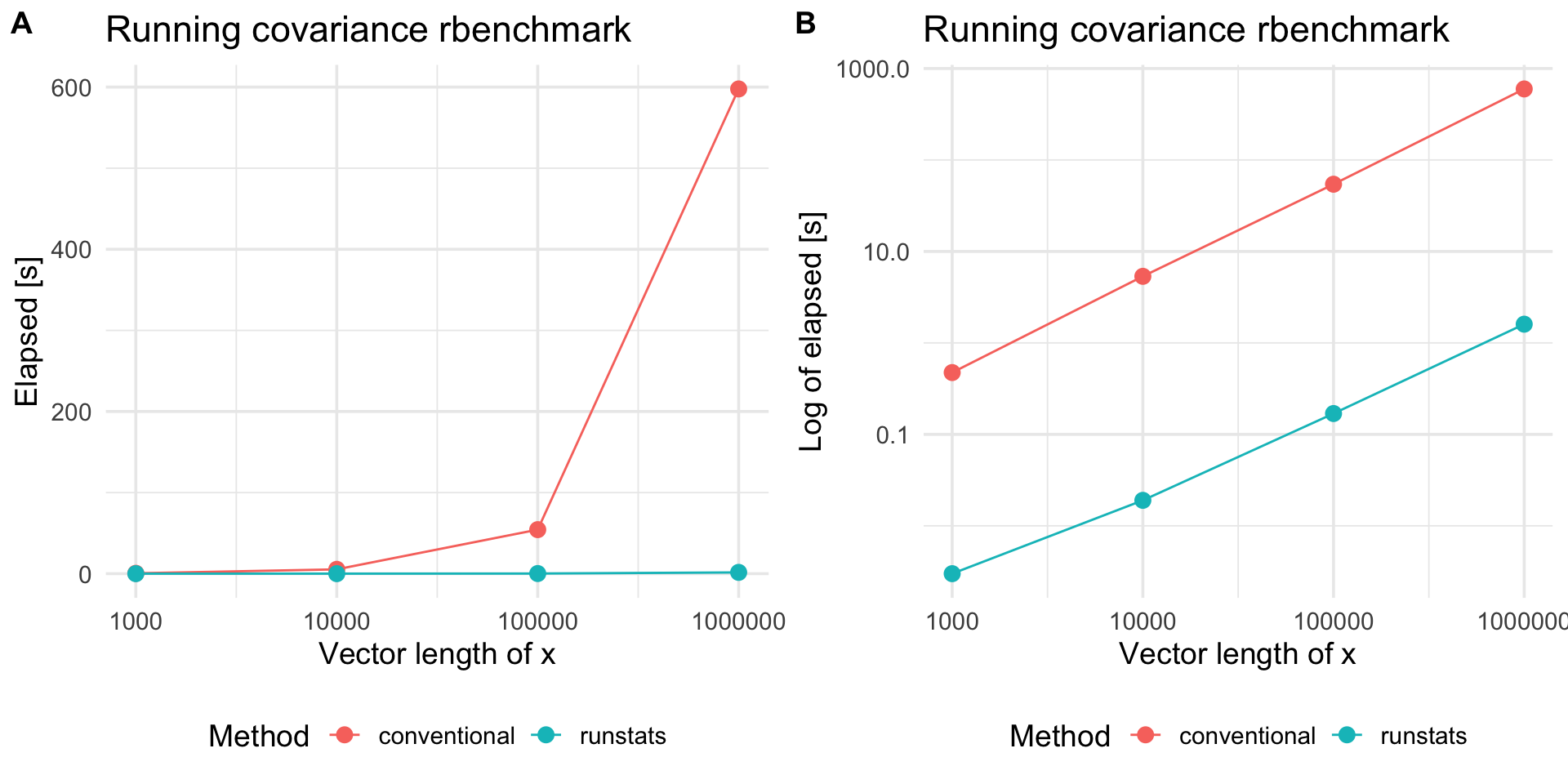 <- benchmark("conventional" = RunningCov.sapply(x.tmp, y),
