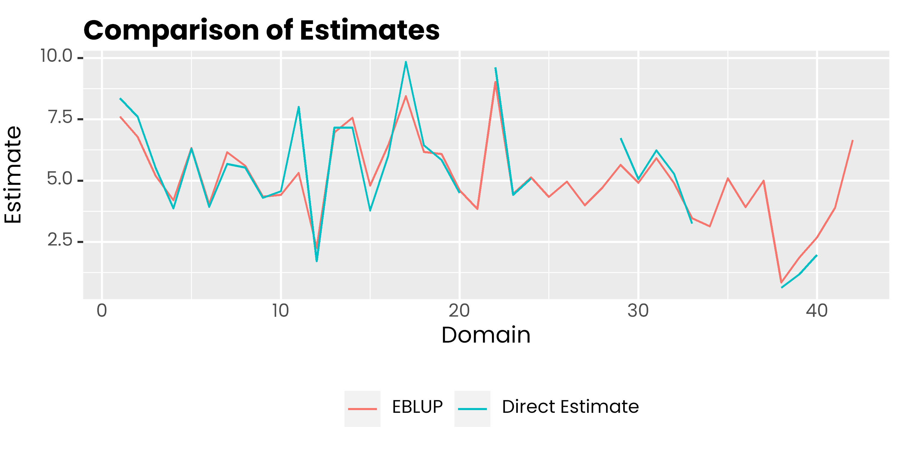) labs(col = NULL, y = 'Estimate', x = 'Domain', title = 'Comparison of Estimates') +