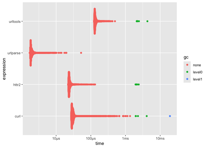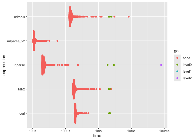 #> 4 urltools 124.44µs 132.68µs 7119. 2.18MB 23.2