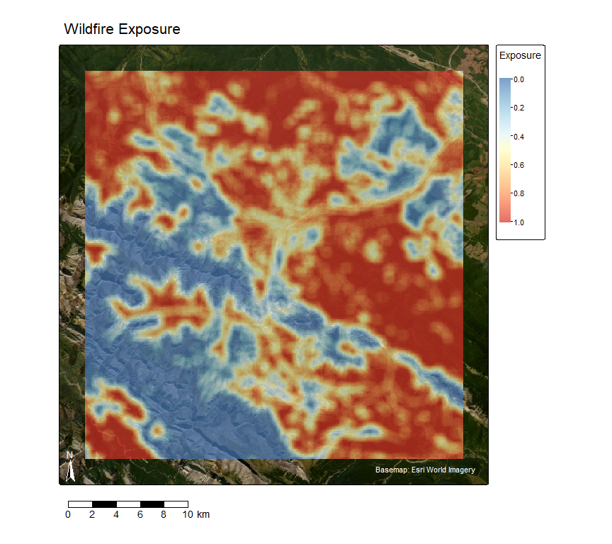This package and the code within it will always be free. Financial costs can also be a significant barrier to conducting wildfire risk assessments. Though this package is free to use there are still associated time costs, which will vary based on experience level. Even novice R users should have enough resources to conduct their own wildfire exposure assessments by referencing the documentation in this package and the plethora of free R tutorials available online.
