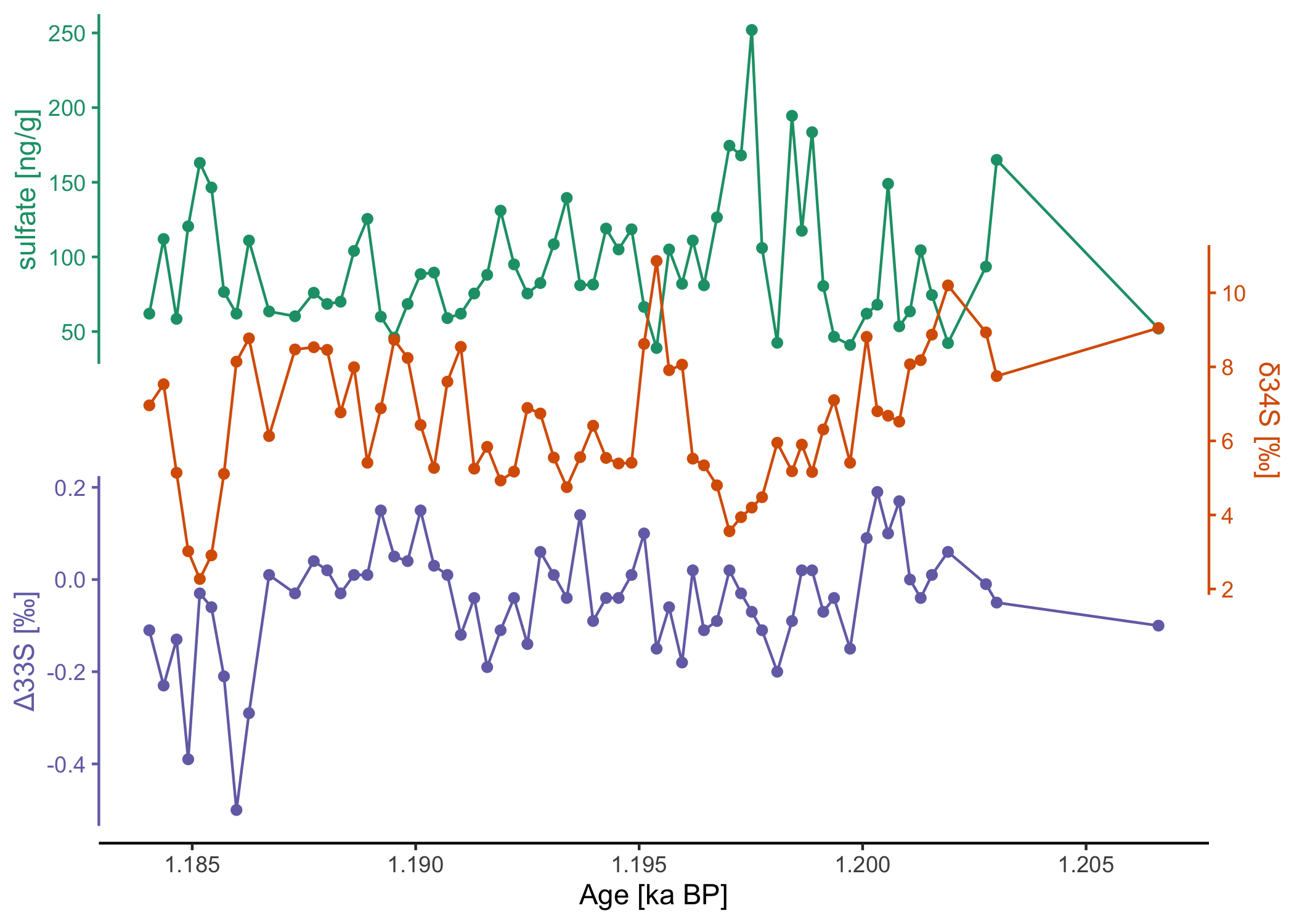 "Δ33S [‰]" = "Δ33S [SO4]2- [‰ CDT] (Multi-collector ICP-MS (MC-IC...)"