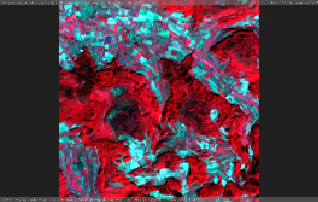 plainview(poppendorf, r = 5, g = 4, b = 3) # false color