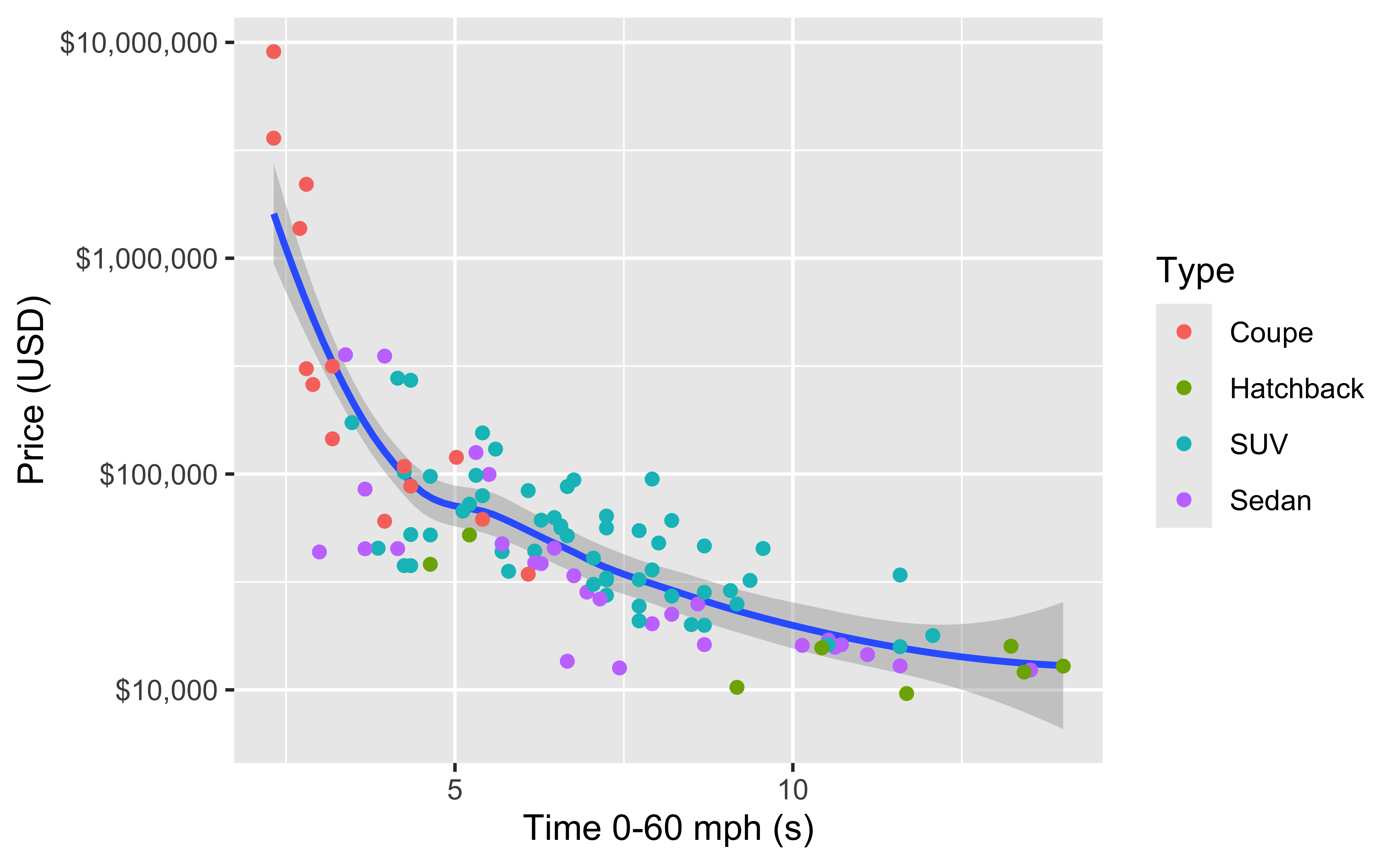 ggplot(aes(x = performance_mph, y = price_usd)) +